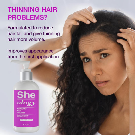 Sheology Maximum Hair Growth Biotin & Keratin Conditioner For Women - Natural DHT Blockers To Reduce Hair Loss - Biotin, Keratin and Saw Palmetto - Best for Growth and Thickening - Made in USA