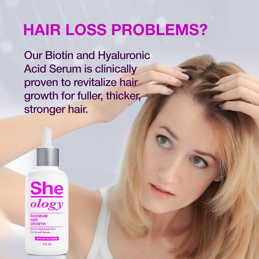Sheology Maximum Hair Growth Biotin & Hyaluronic Acid Serum for Women - For All Hair Types - DHT Blocker & Scalp Serum - Anti Thinning - Anti Hair Loss - Hair Thickening - Hair Regrowth - Made in USA