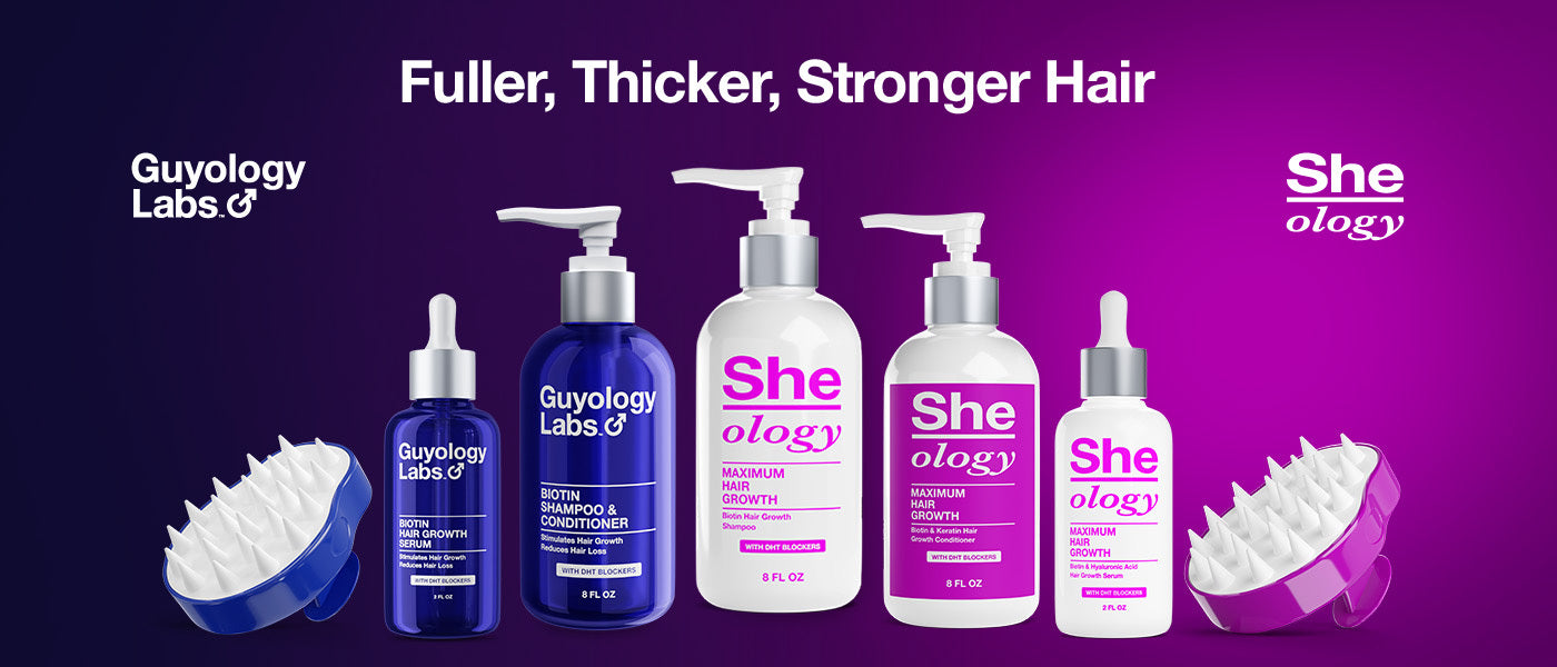 Guyology Labs™ Biotin Shampoo & Conditioner Hair Growth Shampoo with AnaGain™ + Scalp Massager / Shower Brush
