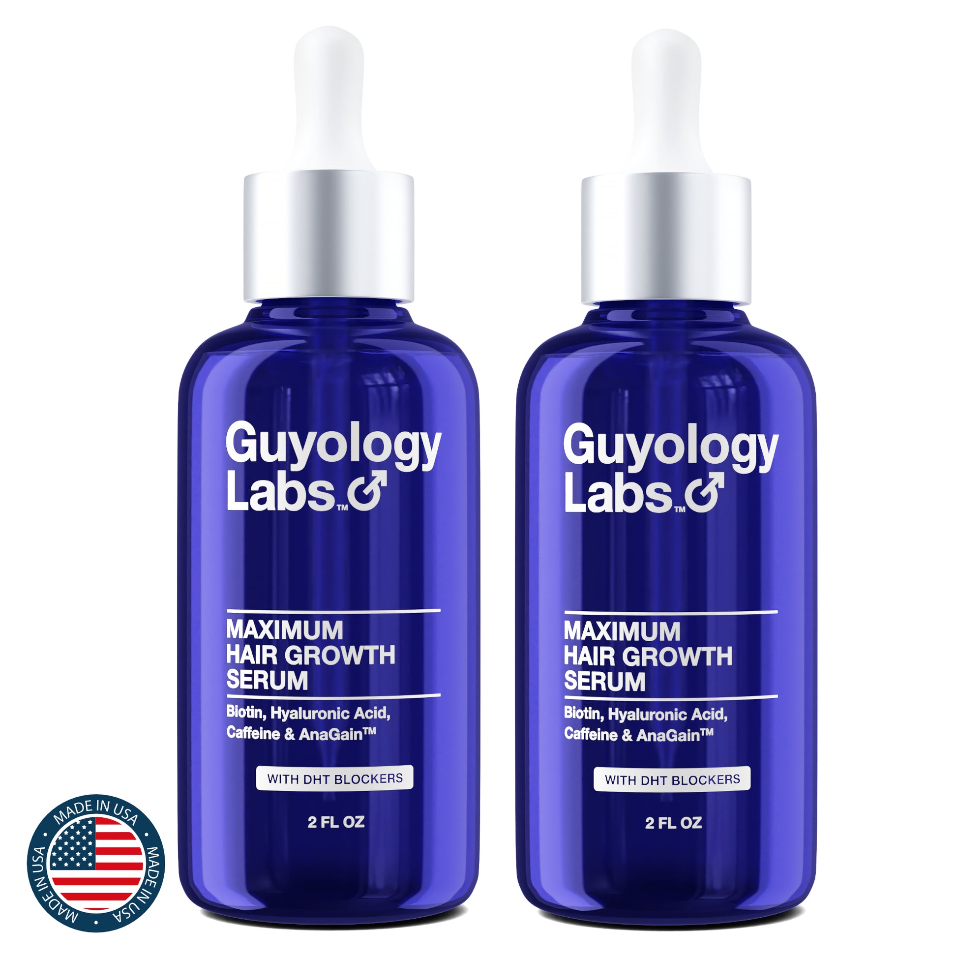 Twin Pack 2 x Guyology Labs Biotin & AnaGain™ Hair Growth Serum for Men, Women & All Types of Hair - DHT Blocker & Scalp Serum - Hyaluronic Acid, Citrus - Anti Thinning Hair - Anti Hair Loss - Hair Regrowth - Made in USA